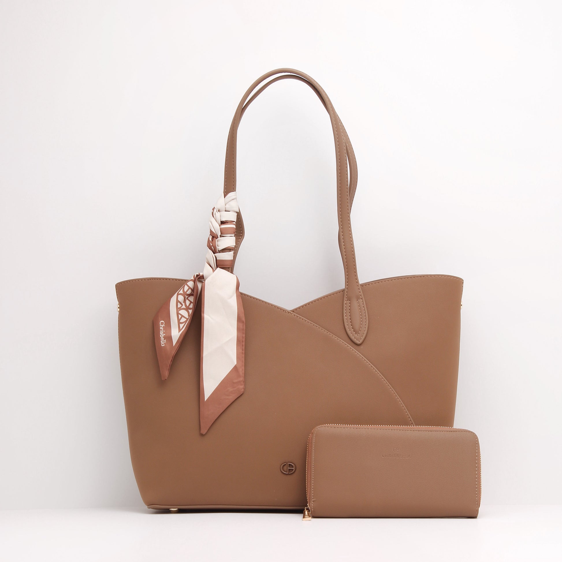 Finished with refined stitching, long comfortable handles, and a signature scarf detail, Aria elevates everyday looks with effortless charm. The spacious interior is perfectly complemented by a matching wallet, offering both style and organization in one elegant set.