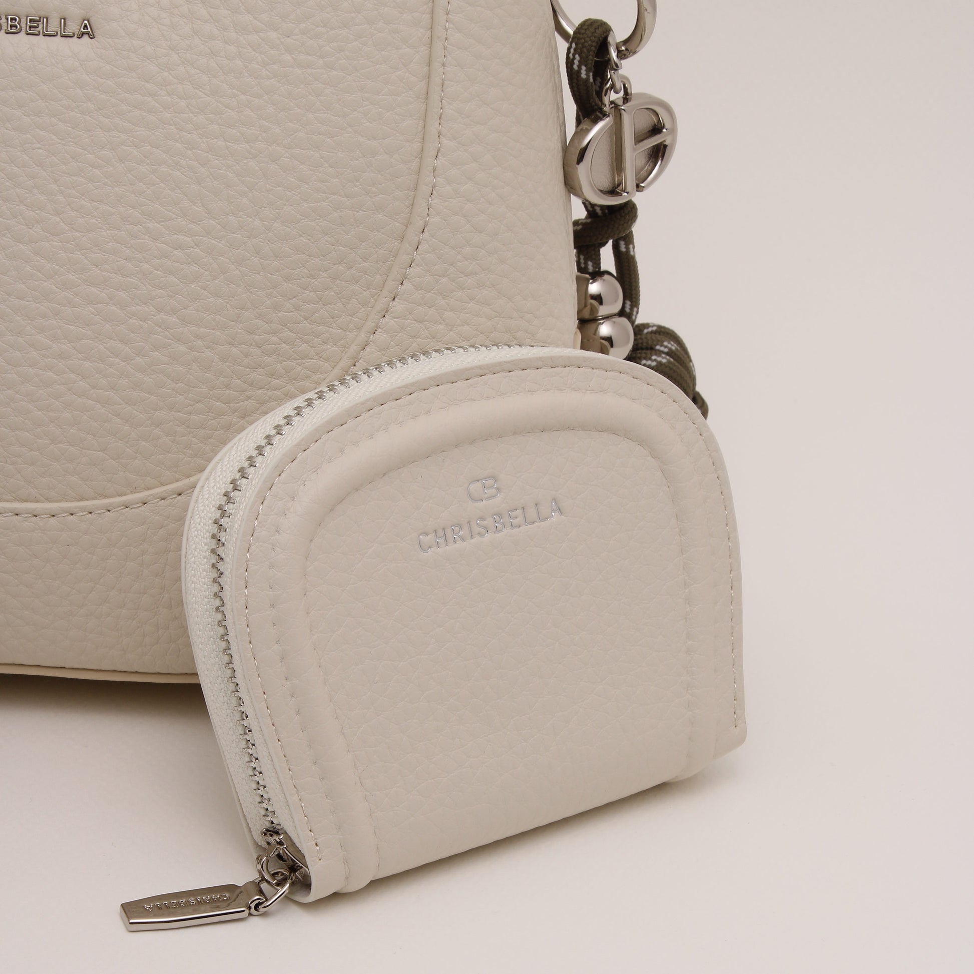 Thoughtfully detailed with the signature Chrisbella logo and elegant hardware accents, this design is elevated by a matching wallet and a detachable strap, allowing it to transition seamlessly from hand-carry to shoulder wear. Its structured yet lightweight feel makes it ideal for both daily outings and polished occasions.