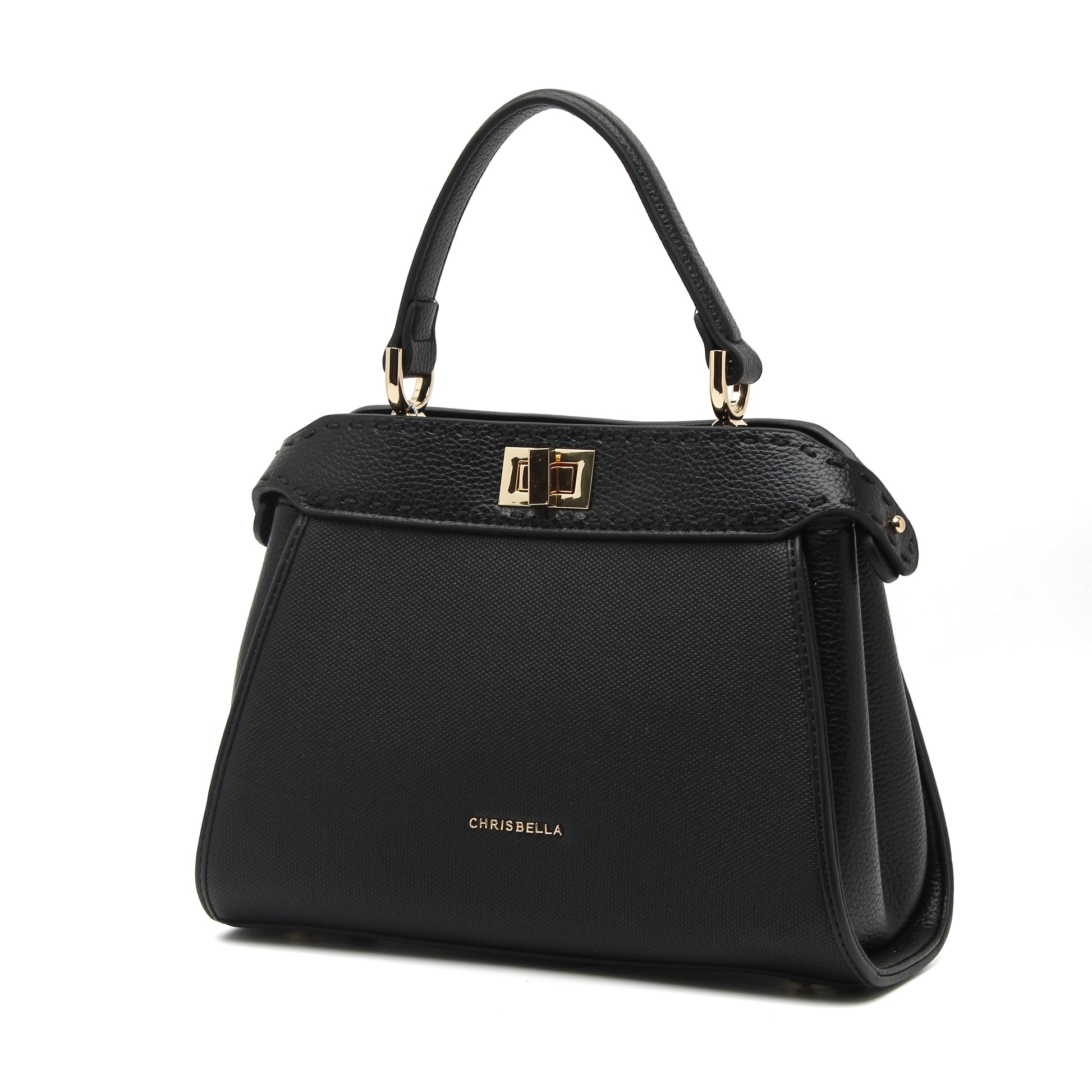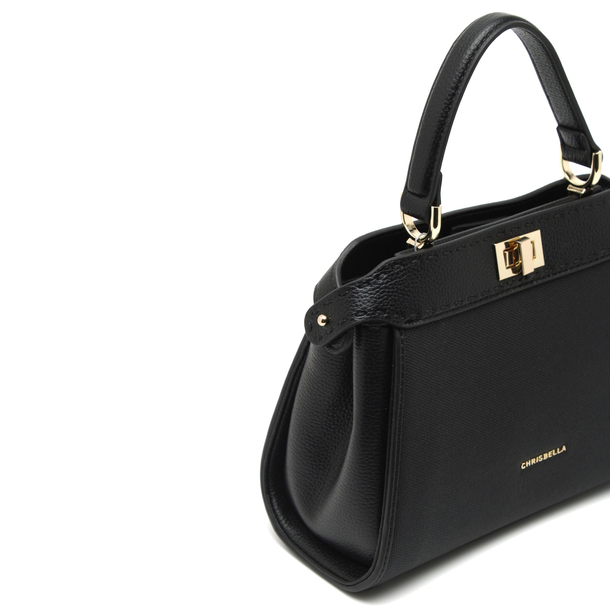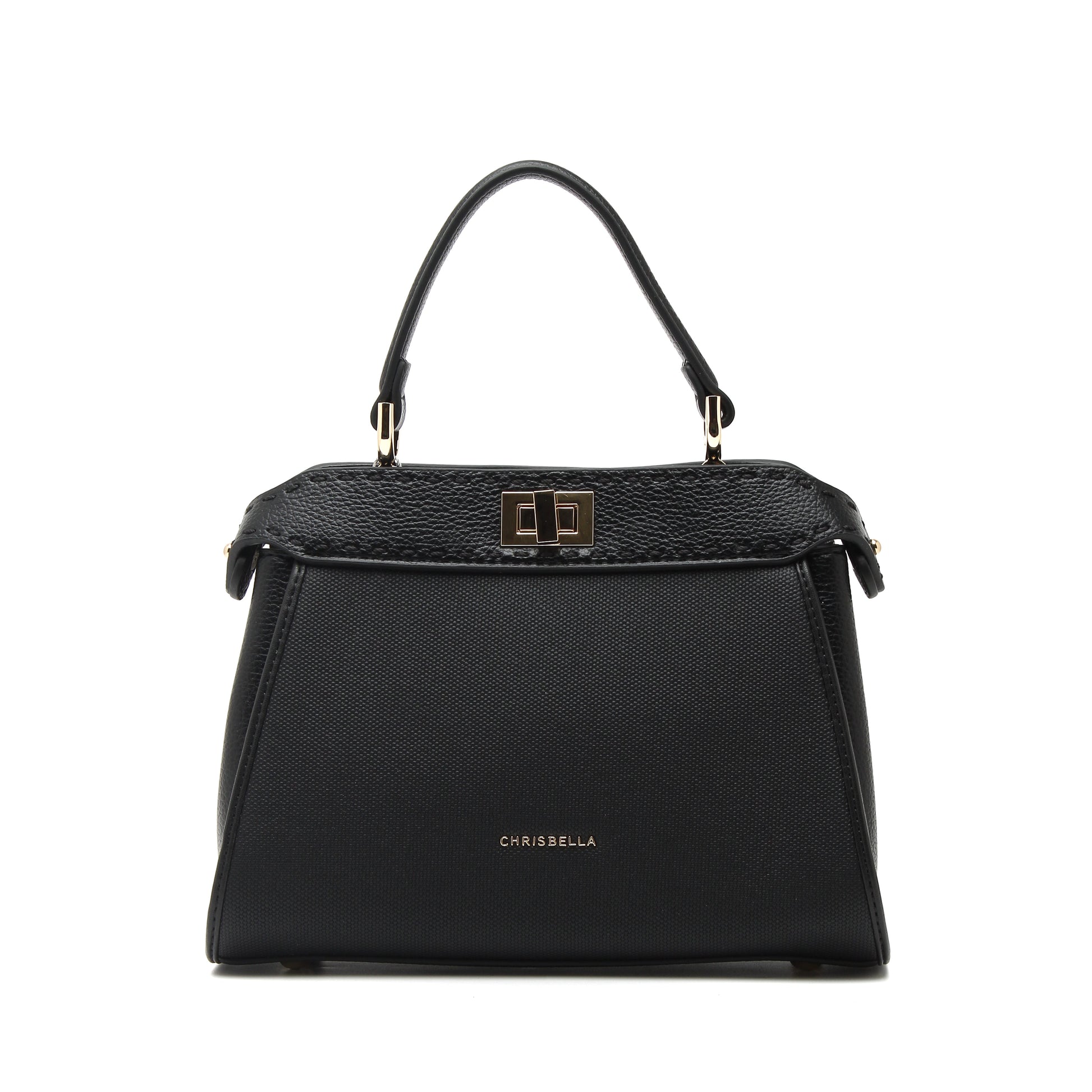 Gold-tone hardware and the signature Chrisbella logo bring a touch of understated luxury, while the secure twist-lock closure keeps your essentials safe in style. Compact yet spacious, Verve Black is your perfect companion for all occasions — versatile, refined, and essential.